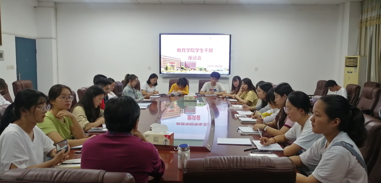 为扎实推进”不忘初心、牢记使命”主题教育活动,全面落实“调查调研”环节,2019年10月10日晚7:00,我院以“学生干部能力培养”为主题的学生干部座谈会于八教208准时召开。会议由党委副书记刘辉亚主持,团委学生会主席团成员以及各部门部长参加座谈。
