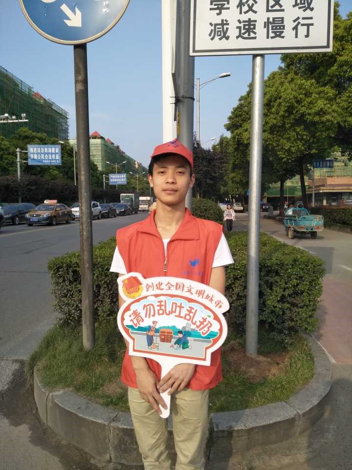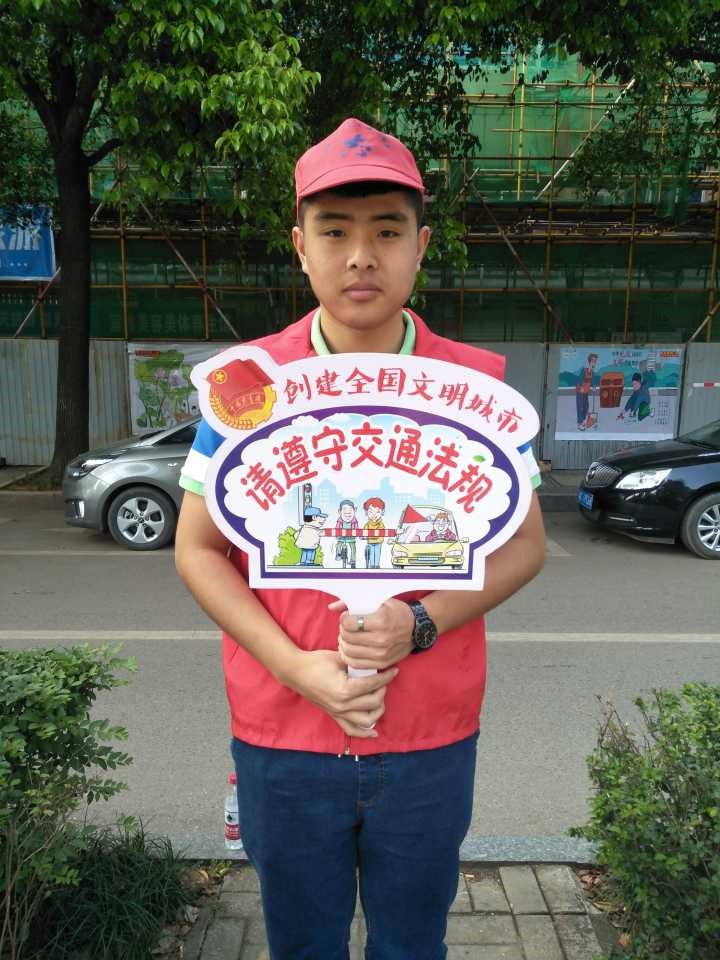 2017年4月30日教育学院青年志愿团6名团员在四中路口开展了创文站岗活动。提醒人们要走斑马线,不要横穿马路。