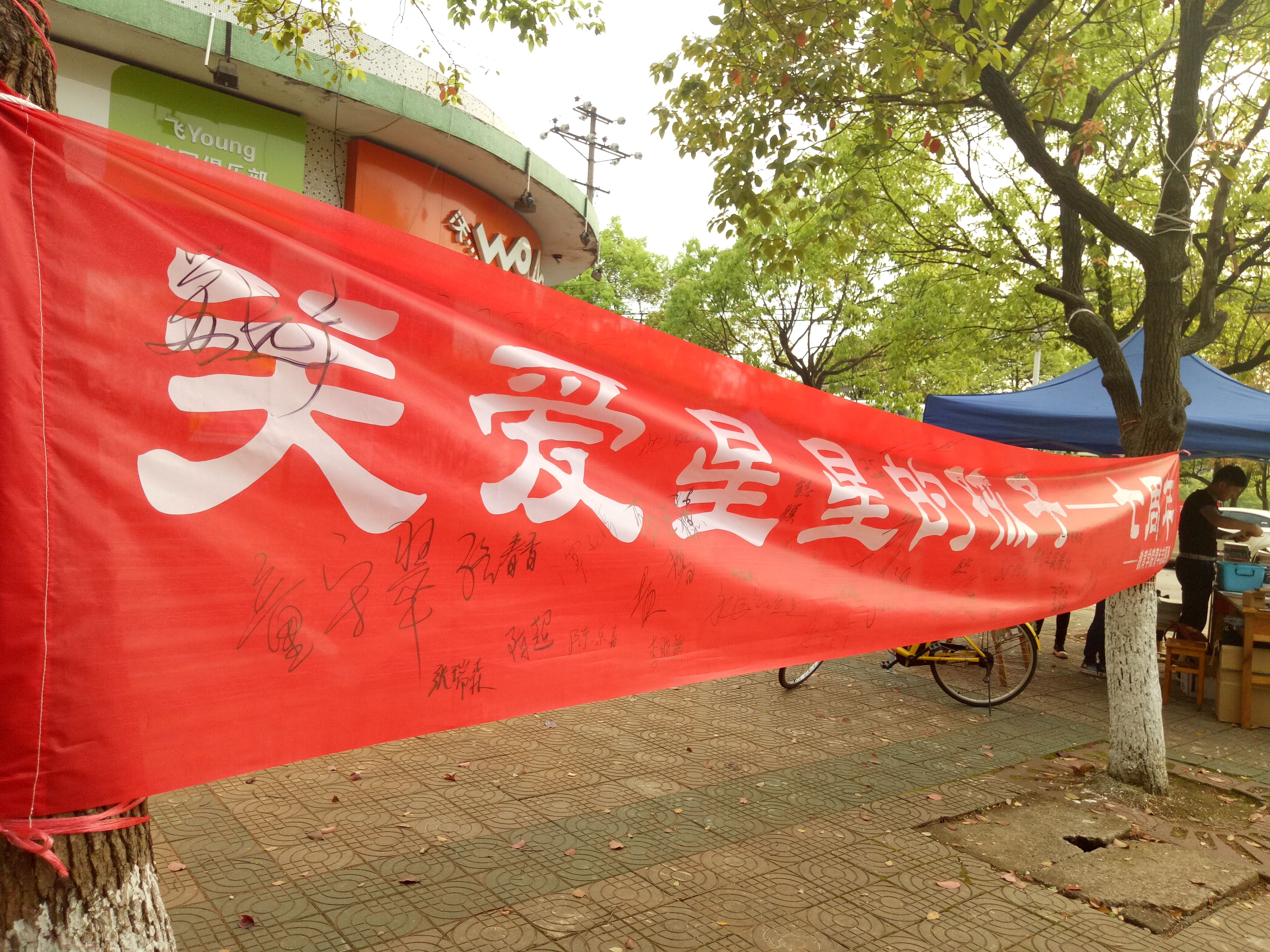 活动中志愿者们向路人分发着有关关爱自闭症儿童的宣传单,希望借此让更多人了解这些孩子并向他们伸出援手,许多过往的行人走向募捐盒,他们放入的一张张纸币,一枚枚硬币,皆是一份份沉甸甸的无法衡量的爱与善良。志愿者们在募集善款的同时也向每位募捐的好心人送出一本由各校友们募捐的书籍。
