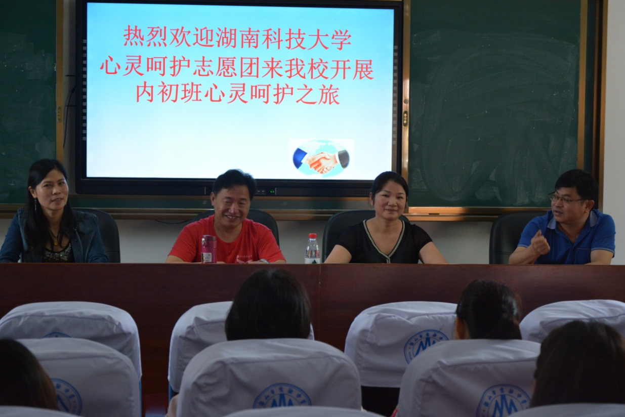 上午8:30,经过一个半小时的车程,志愿者们顺利到达韶山实验中学,受到校方的热烈欢迎。经过简单的调整,志愿团与校方领导、新疆班的班主任们召开了座谈会,此次心灵呵护志愿活动正式开始。