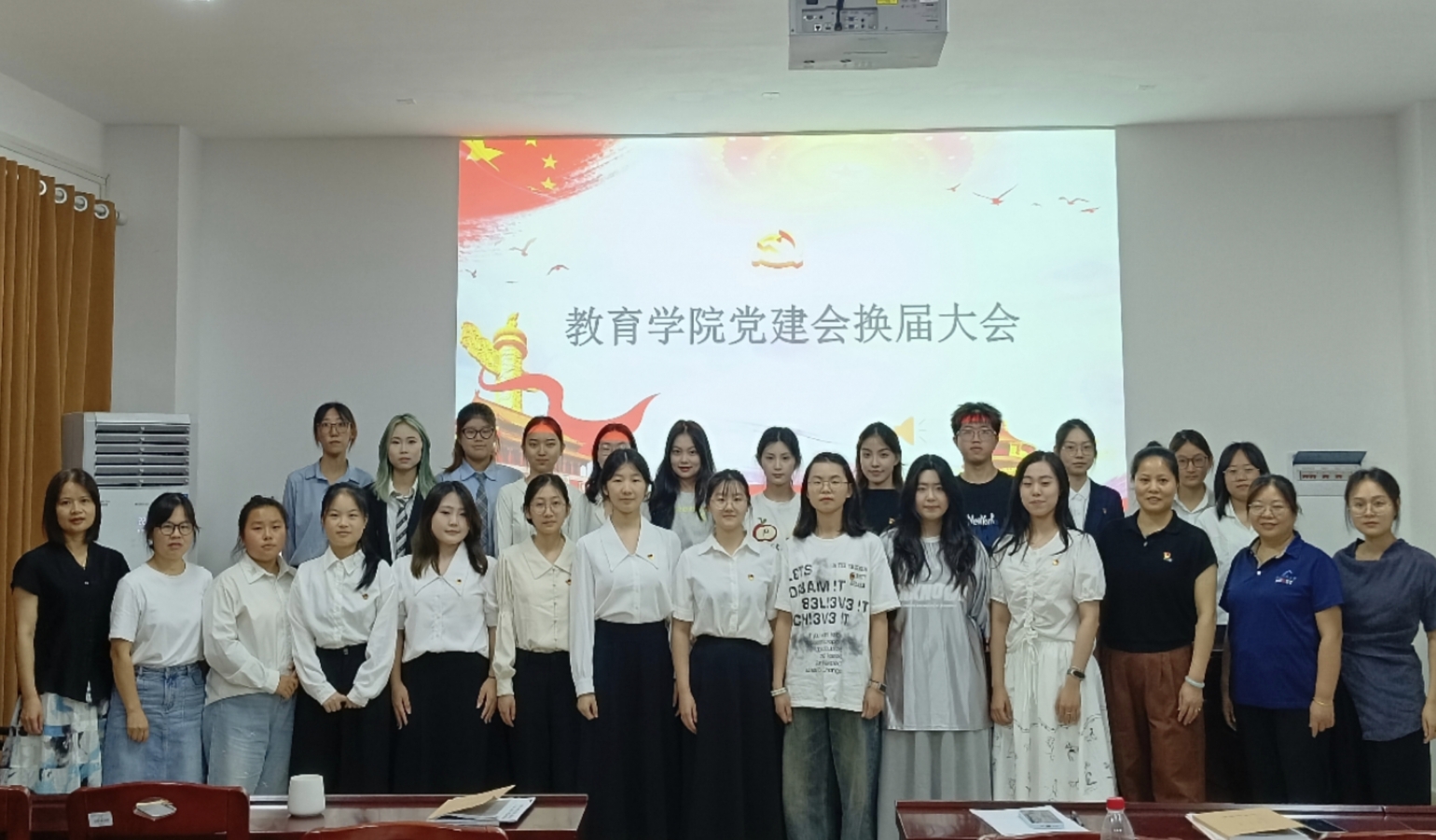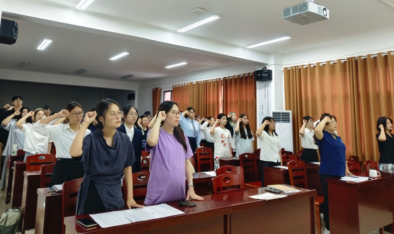 6月10日下午,我院2025年上半年新发展党员入党宣誓仪式暨第十六届学生党建工作委员会换届大会在敏行楼A231会议室举行。学院党委副书记文红梅、各学生党支部书记及全体学生党员出席,胡银华主持会议。