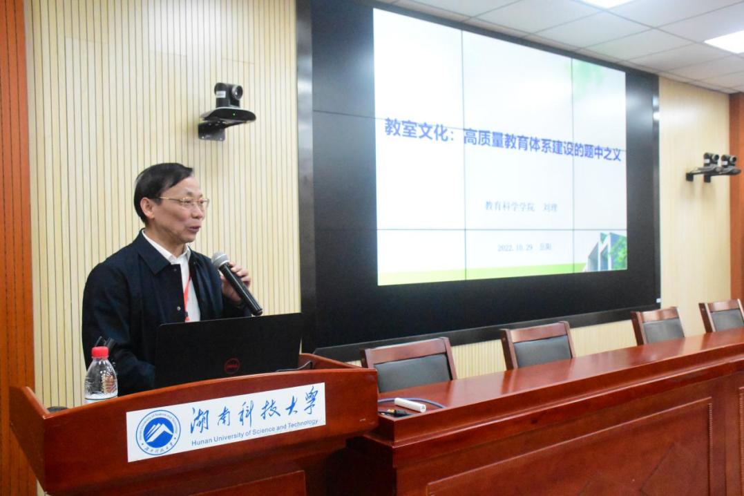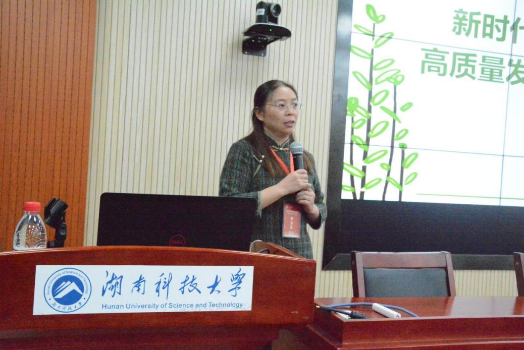 ▲湖南理工学院教育科学学院院长刘理作报告
