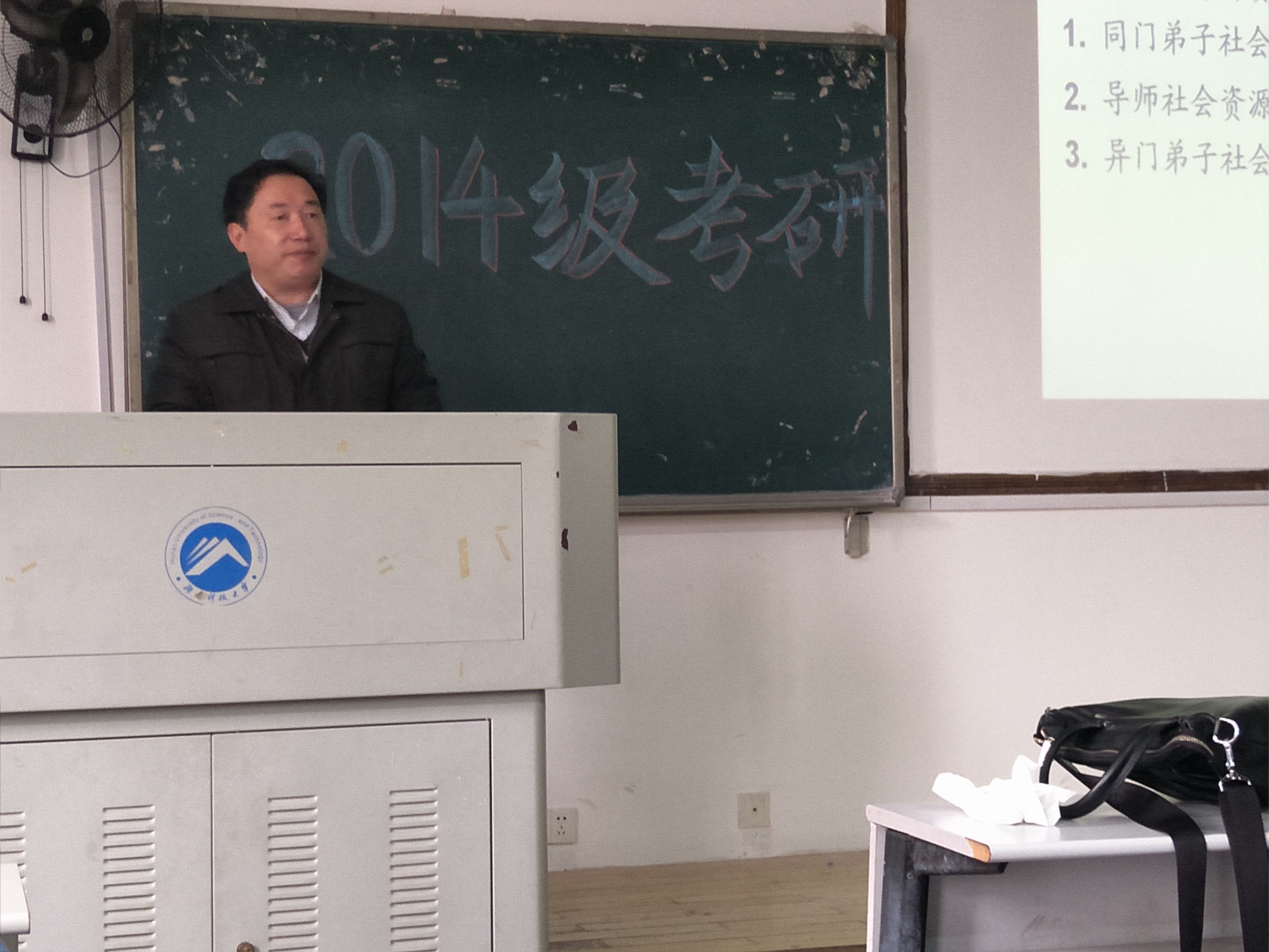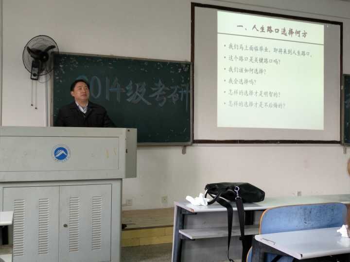 为使2014级学生能做好人生选择,找准人生方向,2016年12月28日上午十点,湖南太阳成集团tyc122cc入口2014级考研动员大会于第八教学楼2-3准时开始。动员大会由教育学院党委副书记王伟清教授主讲,院学工办练素华老师也出席了此次动员会。