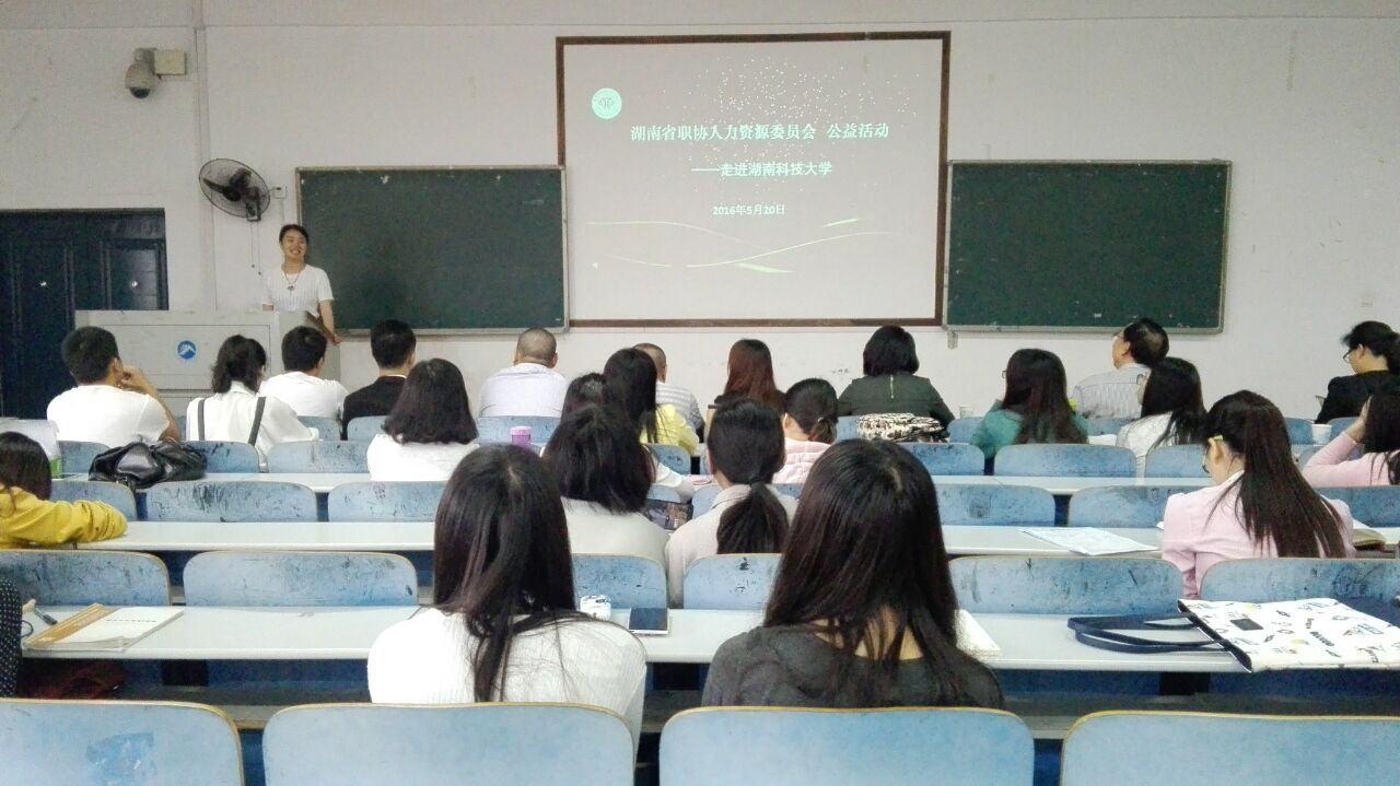 2016年5月20日,由湖南科技大学教师教育大学生创新训练中心主办的“危与机:互联网时代的职业选择”讲座在八教3-3顺利举办,东方雷达教育机构联合创始人、东方领袖学院院长黄治国老师为主讲人。教育学院陈慧青副院长、李建生教授;湖南省职协人资委秘书长、党支部书记、吉善堂创始人张云龙先生;湖南省人资委副会长、东方雷达教育机构联合创始人刘圣勇先生,以及来自湖南省人资委会员单位的蔡鹰波、王霞、刘新初、杨署红等四位常务理事;教育学院教务办王方、陆明丽老师等出席了此次讲座。