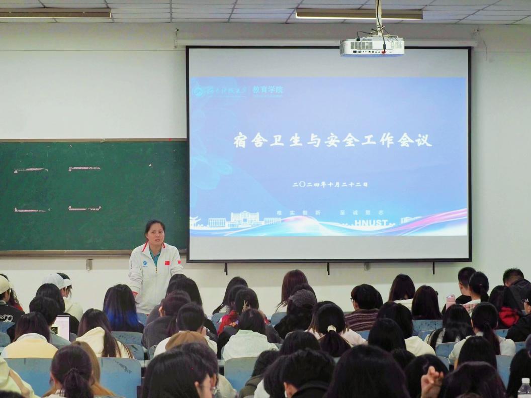 文红梅强调了宿舍卫生与安全的重要性。她指出同学们需严格遵守宿舍管理规定,确保宿舍环境整洁有序,并强调严禁私拉乱接电线及违规使用大功率电器等行为,以保障每位同学享有一个安全、舒适且整洁的学习与生活环境。