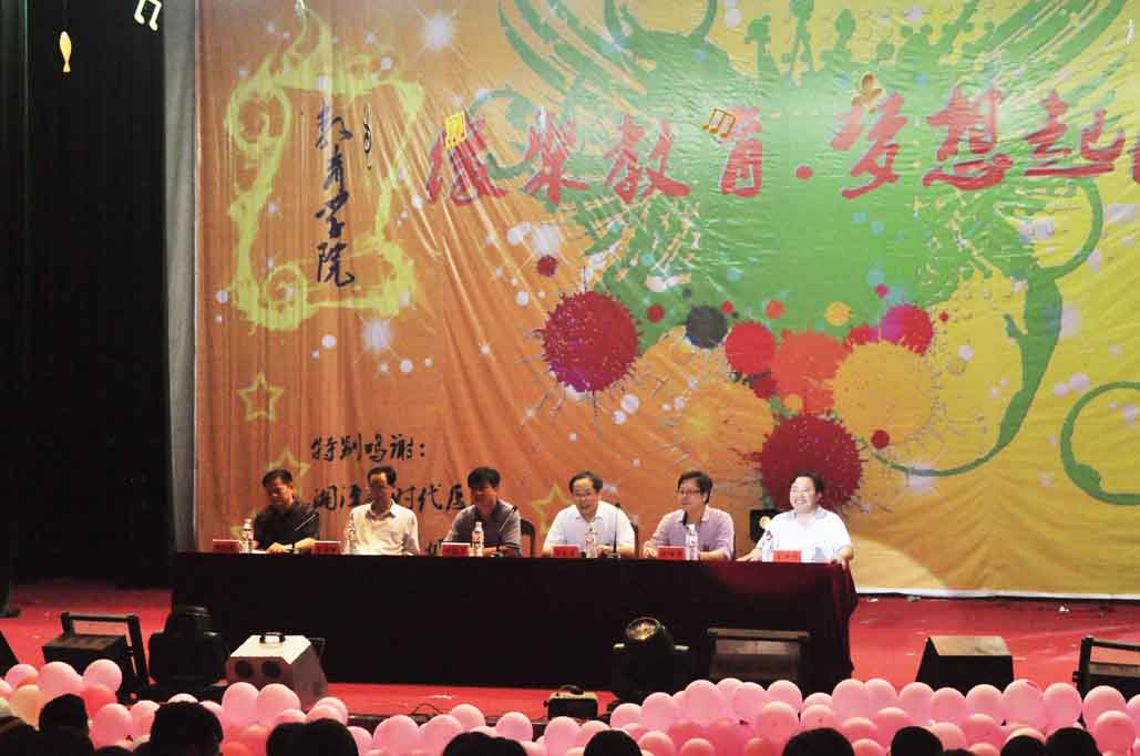 你见过一场演员利用率如此之高的毕业晚会吗?你见过主持方式和串场流程如此活泼的毕业晚会吗?你见过被毕业生们美誉为“别样春晚”的毕业晚会吗?一切尽教育学院在2013届毕业典礼暨欢送毕业生晚会。 2013年6月9日19:00,教育学院2013届毕业典礼暨欢送毕业生晚会在南俱拉开帷幕,院长陈春萍教授、党委书记谭建平教授、副院长陈坤华教授、副院长李建生教授、副院长周险峰教授以及党委副书记王伟清教授携手全院师生,为09级300多位本科生、100多位研究生践行。