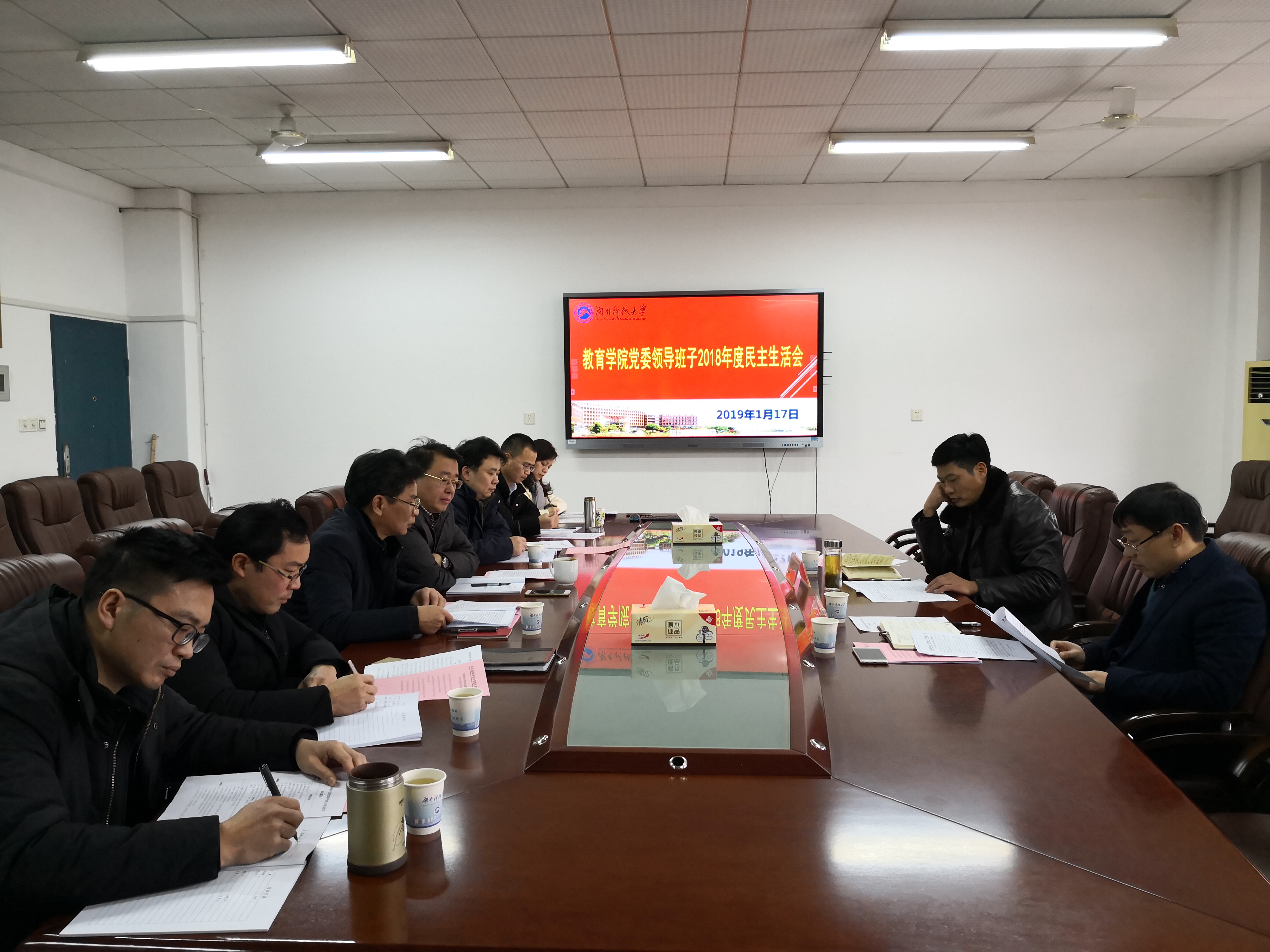 2019年1月17日下午,我院党委领导班子2018年度民主生活会在第八教学楼208会议室召开。校党委委员赵前程,学工处处长尹风雨到会指导,会议由院党委书记李炳煌主持,全体院党委委员与会。