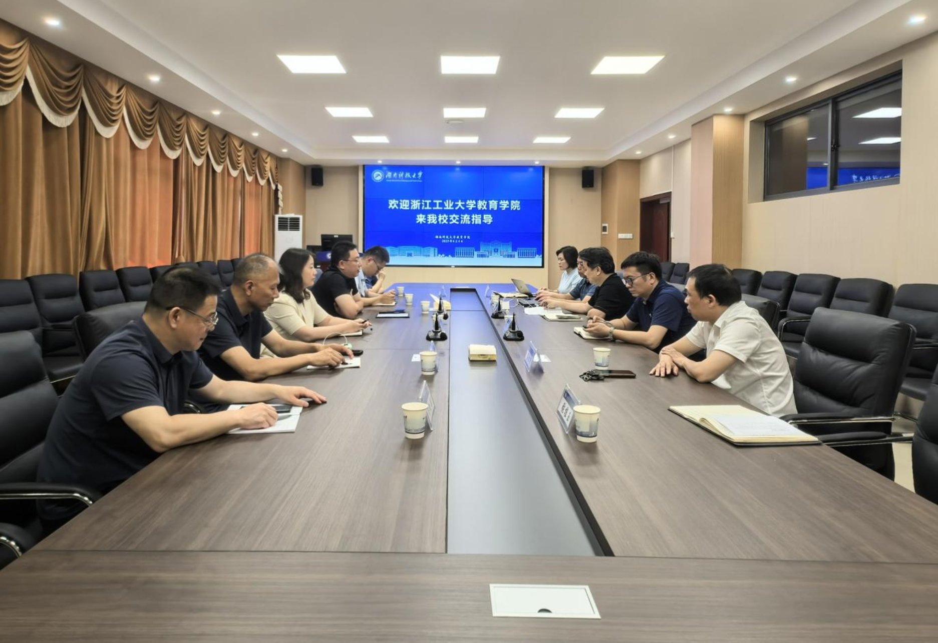 2025年6月4日,浙江工业大学教育学院副院长刘晓一行莅临我院开展调研交流,旨在深入学习借鉴我院在学位点建设,人才培养,师资队伍建设等领域的实践经验。会议由院长谭千保主持,院领导、系主任代表、研办负责人与会。