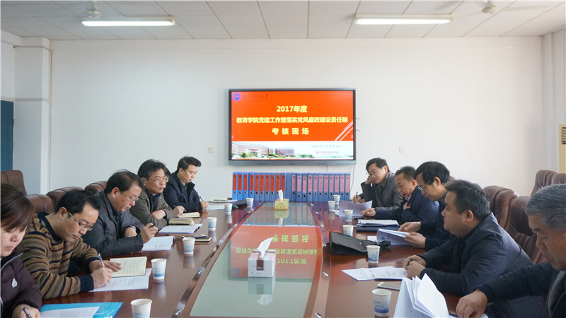 2017年12月19日上午,八教208会议室,校党委朱川曲副书记带队,学校基层党建工作暨落实党风廉政责任制建设考核工作组(党办校办戴树根主任、商学院潘爱民书记、艺术学院曾志东书记、党委党校彭雪贵副校长、党办校办行政科罗芽松科长)对教育学院2017年党建工作暨落实党风廉政责任制建设情况进行现场考核。考核工作组认真查阅我院党建工作与落实党风廉政责任制建设情况相关材料。