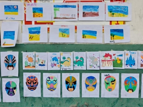 深情演绎接踵而至。饱含情感的合唱与朗诵,抒发了孩子们对传统文化的感悟以及对祖国的炽热情怀。支教老师邓幸源深情演绎的独唱《大江东去》,以其洪亮的嗓音和充沛的情感震撼全场,将现场气氛推向高潮。汇演同时展出了学生们充满奇思妙想的手工绘画作品,吸引了众多师生和家长驻足欣赏。
