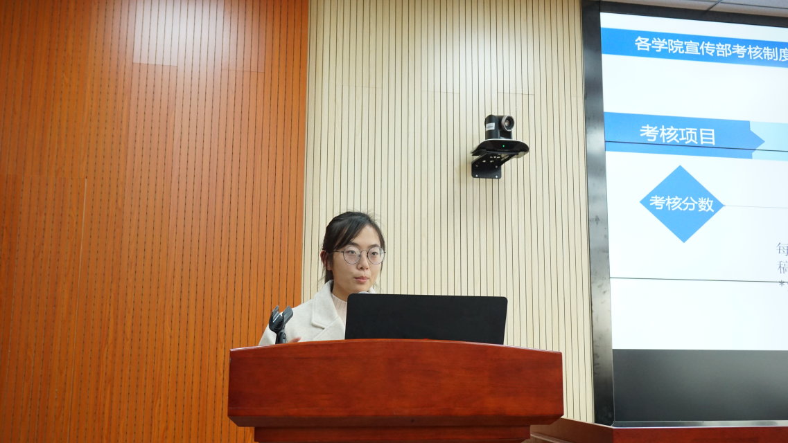 之后,宣传网络部副部孙晶晶进行了新闻写作培训,她从新闻的六要素和五结构入手,详细地讲解了如何取标题、如何突出主体以及新闻中需要注意的问题等,结合学院已有的新闻给予直观的展示与指导。接下来,由宣传网络部副部刘炜杰跟大家分享校园新闻摄影的经验,他提出一些拍摄要点,如照片要突出主体、找到合适的构图、从多角度进行拍摄以及内容要反映事件的标志物等。随后,由宣传网络部部长杜玉洁讲解学院新闻投稿考核制度与要求,她提到教育学院微信公众号的各栏目需要相关部门负责管理维护,也强调宣传不是一个部门的工作,而是各个部门的协同合作,鼓励大家积极向公众号及各新闻网投稿。