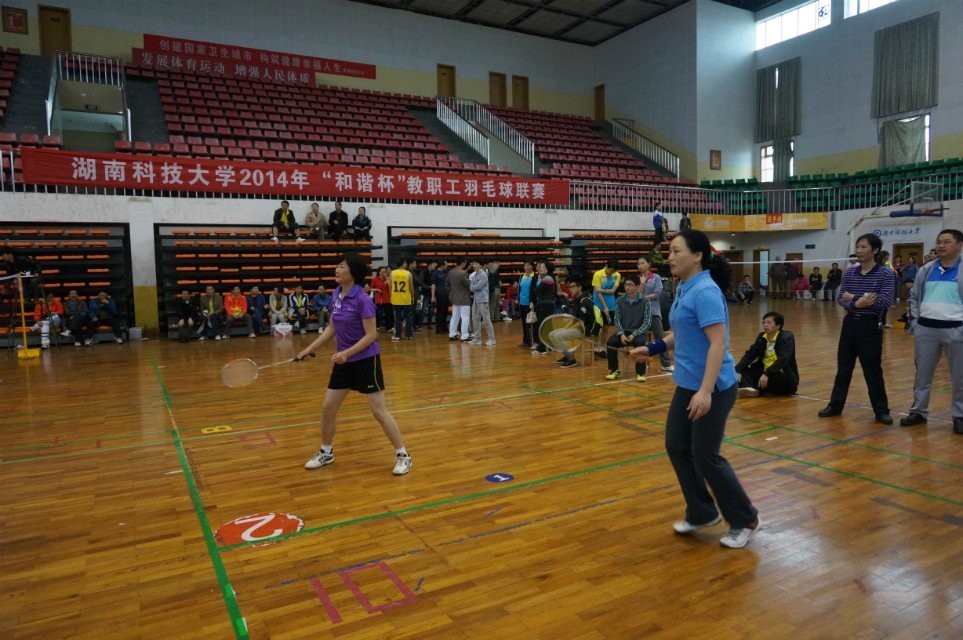 湖南科技大学2014年“和谐杯”教职工羽毛球赛于4月26-27日在北校区体育馆举行。