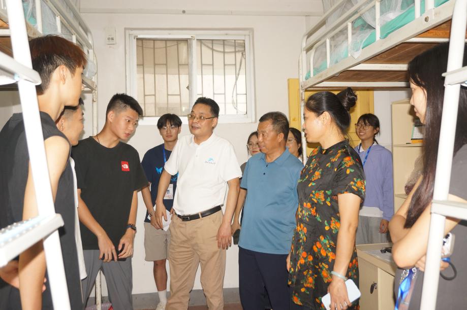 为深入了解新生入学适应情况,9月11日,教育学院党委书记傅早霞、副院长陈京军、副院长张进良、党委副书记文红梅带领辅导员深入2025级研究生和本科生宿舍,开展新学年走访慰问活动,为新生传递学院的关怀与温暖。
