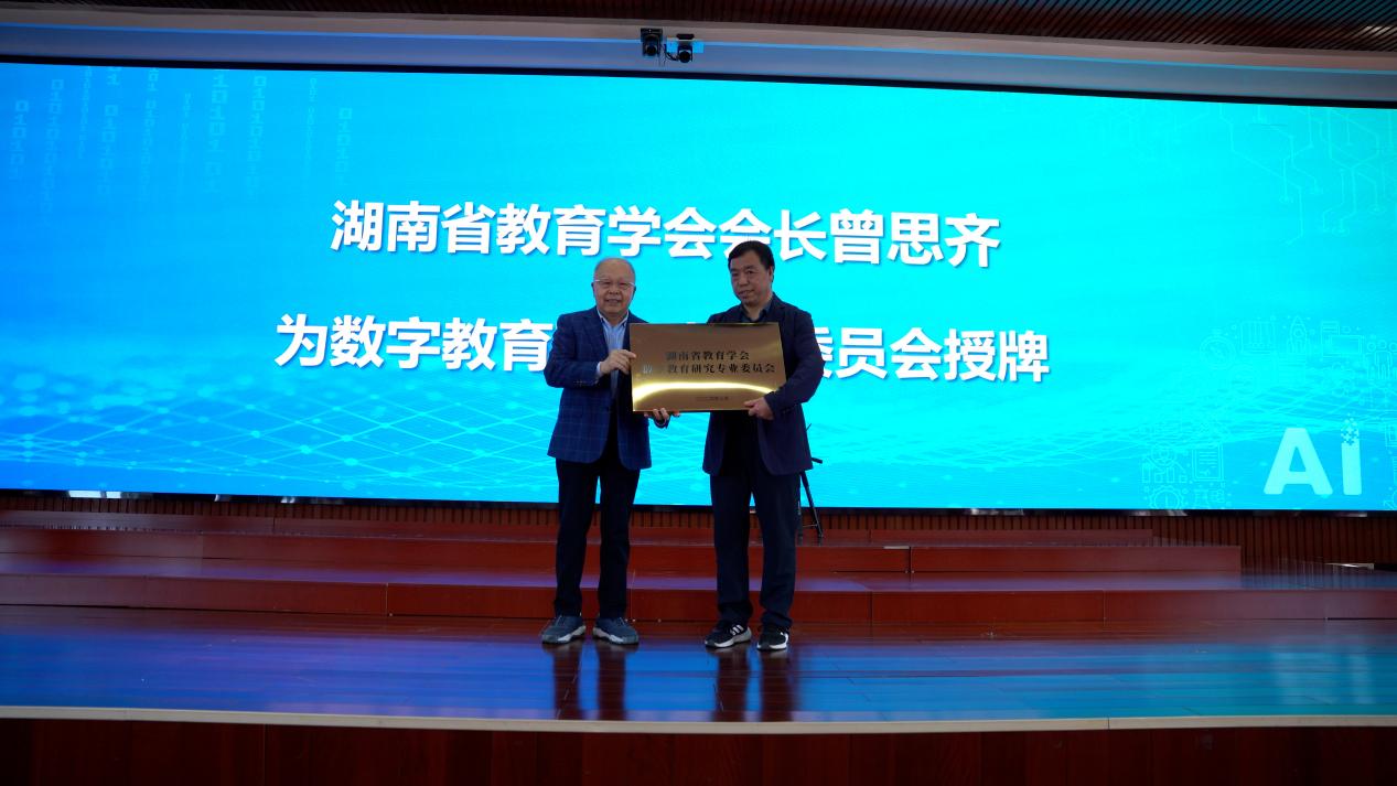 ▲湖南省教育学会会长曾思齐为数字教育研究专业委员会授牌