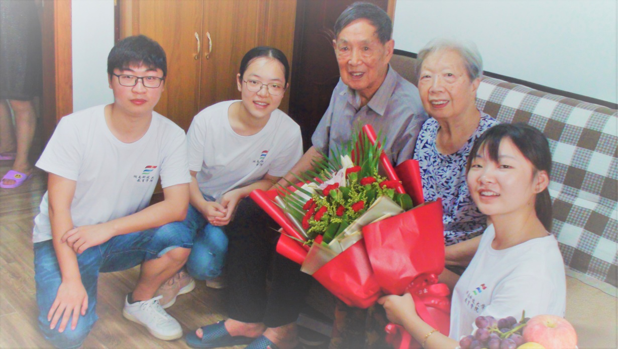 早晨9:30,队员们手捧鲜花抵达了刘作碧爷爷家中,爷爷的妻子汤其明女士亦是一位优秀的人民教师,在小小的一间居室中,爷爷奶奶甚是热情。当团队成员说明是来了解刘佛年老先生的时候,尽管刘作碧老人的身体不太好,但在汤老师的陪同下,却仍精神抖擞的接受了采访。老人对于刘佛年先生仍然记忆犹新,他强调了叔叔对自己的影响至深,特别是叔叔把他对于教育的那一份热爱深深的延续到了家族的血脉中,让家族更多的人包括自己都投身于一线教师行业,教书育人,传承师道。