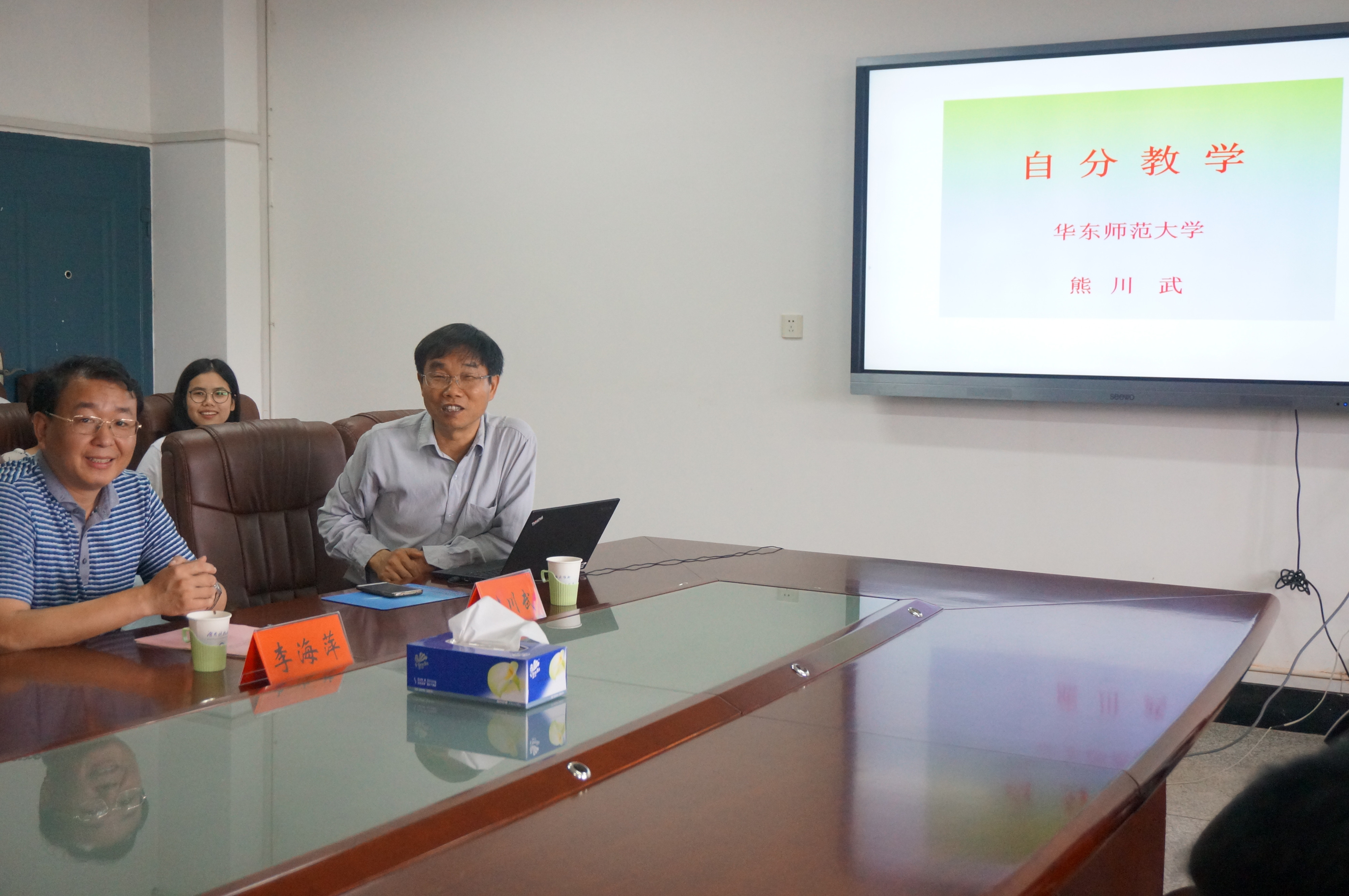随后,熊川武以视频《心太贪》描述了当前“满堂灌”教学的场景和问题,由此引出自分教学,并强调自分教学的“问题导向”,以改变传统教学中“满堂灌”和“因材施教”的不足,着重介绍了自分教学的基本原则,以课堂实例视频充分展示了自分教学的具体环节和实施步骤。