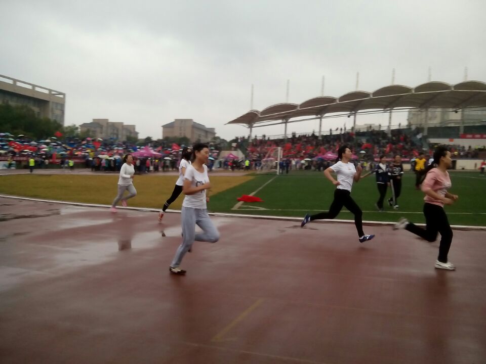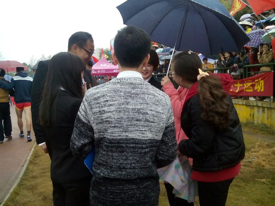 2015年10月29日下午14:00,我校运动会在蒙蒙细雨中如期举行。观众席热情满满,座无虚席,呐喊声打鼓声震耳预聋,这如火如荼的场面,丝毫未受天气的影响。此外,我院学工办藤茜茜老师还来到了现场,给运动健儿们以支持和鼓励。