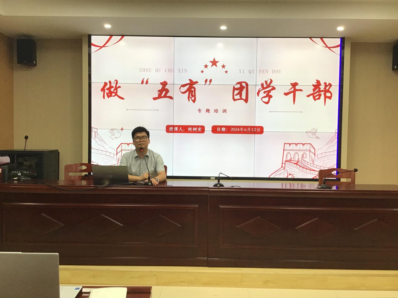 为增强新一届团委学生会干部工作能力和服务意识,6月12日,教育学院第二十六届团委学生会干部培训于敏行楼A333举行。培训以“做‘五有’团学干部”为主题,院团委书记欧树宏主讲,第二十六届团委学生会主席团、各部门部长和副部长全体成员参加。