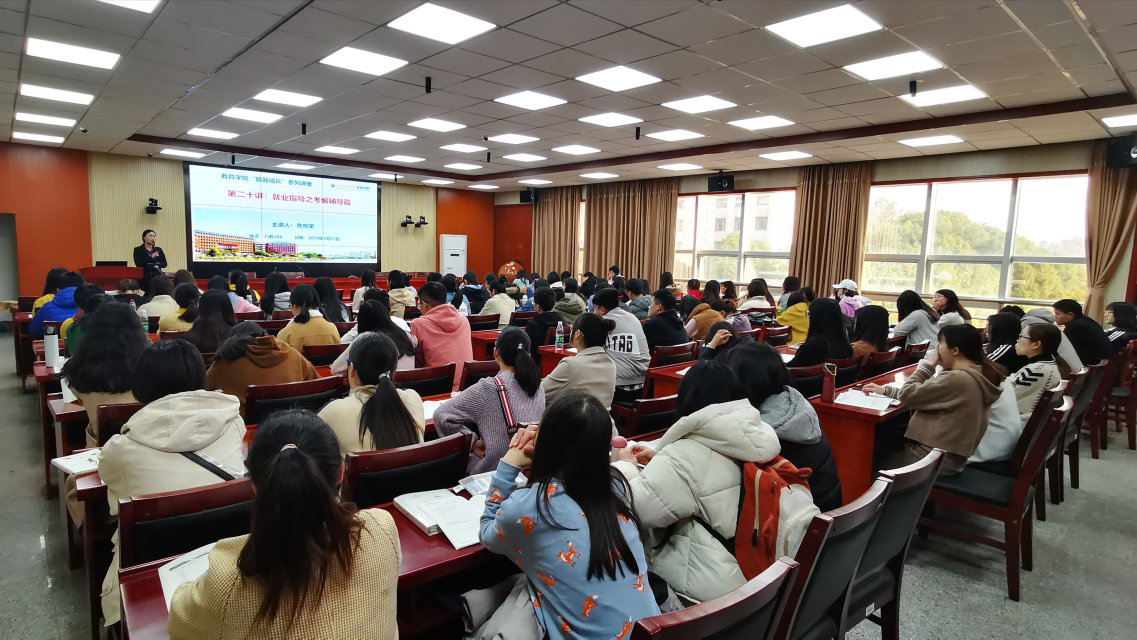 2019年3月12日14点,教育学院特邀中公教育金牌讲师齐向荣作为主讲嘉宾,在第八教学楼308会议室为我院学生带来“助我成长”系列讲座第二十讲:就业指导之考编辅导篇,准备考编和有考编意愿的学生到场聆听。