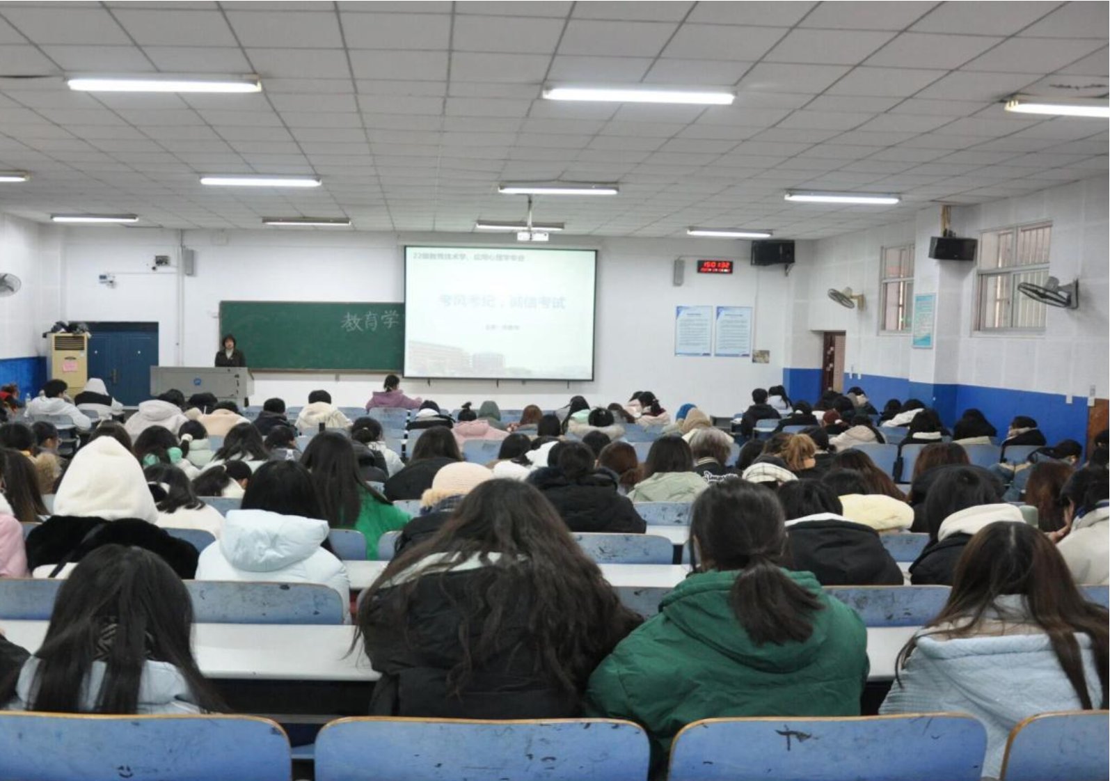 为强化学生规则意识、安全意识,严肃考风考纪,12月17日,我院分别于第八教学楼401、309教室召开2024-2025学年第一学期考风考纪暨期末考试动员大会。此次大会由各年级辅导员主讲,全体学生参与。
