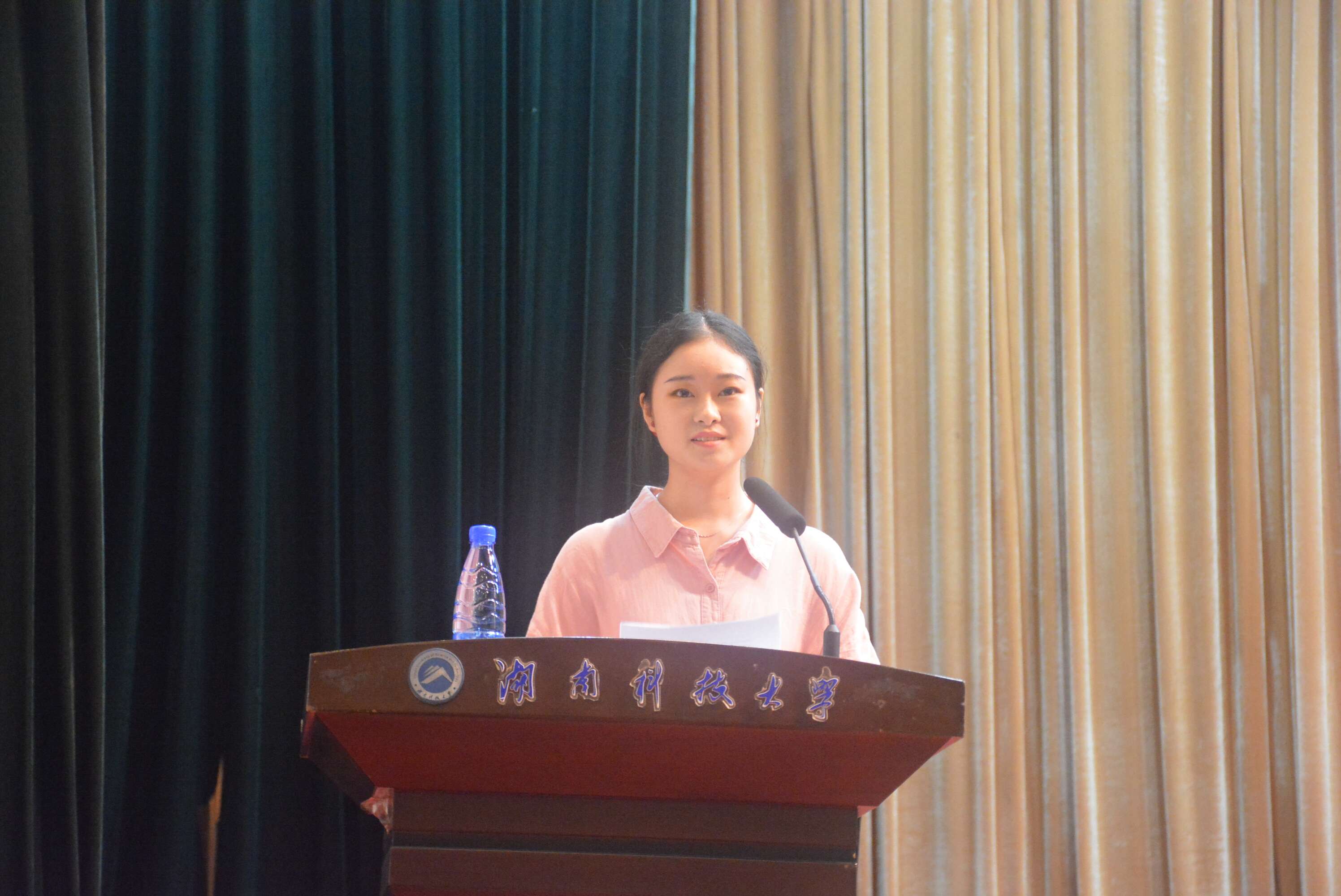 18级研究生代表范乐佳希望在这丹桂飘香的九月,不忘初心,甘于寂寞,以全新的面貌、全新的姿态开启新的征程。坚守道德底线,深刻认识自我,争做创新型人才。