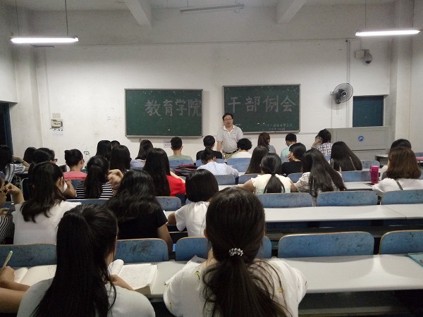 7月1日18时,教育学院第十八届团委学生会首次干部例会于第八教学楼1-4号教室准时开始。在既是建党节又是香港回归纪念日的这个具有重大意义的时刻,我院党委副书记王伟清、学工办主任李涛、第十八届团委学生会各成员及学院各班班干部齐聚指定地点,共同分享这次干部例会暨新一届学生会成员见面会的相关细则及他们的共事情感。