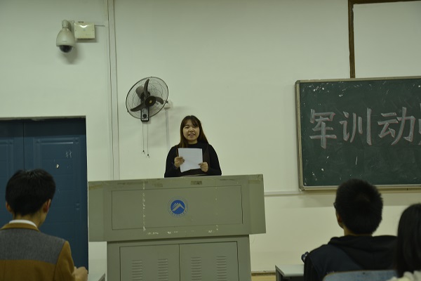 首先,由团委学生会主席贺靖发言。她呼吁大家要通过军训学会以军人的情怀和军人的方式来面对生活,用自己的实际行动为祖国母亲的华诞献礼。