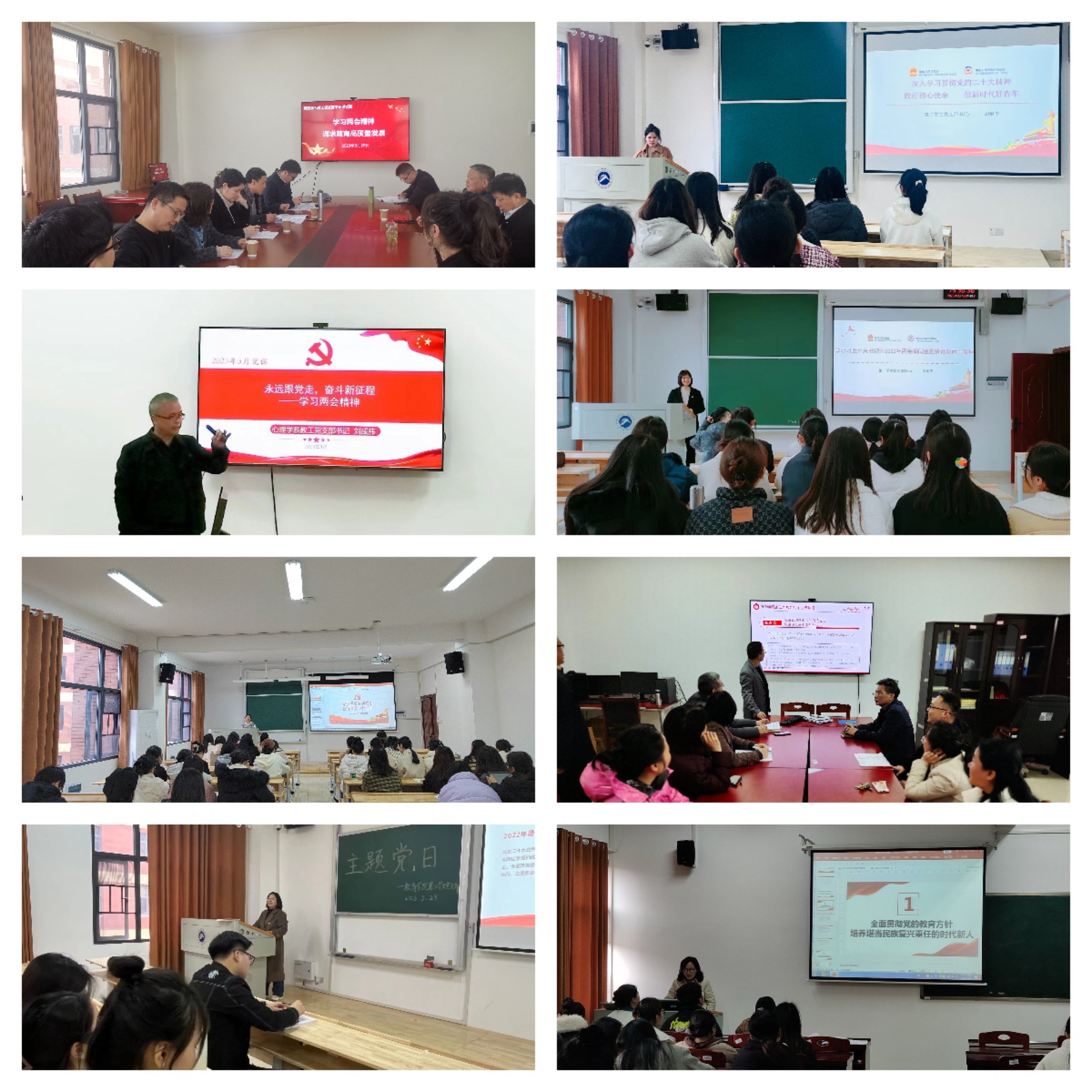 第二个阶段,教育学院八个党支部书记面向各支部党员主讲了党课。各支部的党课围绕宣讲党的创新理论和学校的创新实践,解读党中央实施科教兴国战略和推进教育、科技、人才“三位一体”的重大部署,阐释学科专业对接服务湖南“三高四新”战略、学校“353”战略定位。