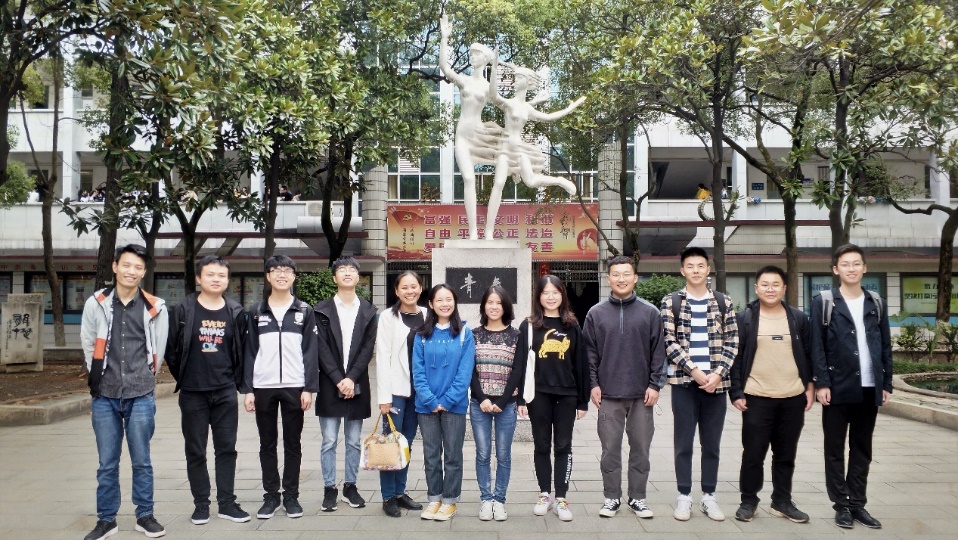 2016级教育技术学一班12位同学在湘潭市二中校园合影留念