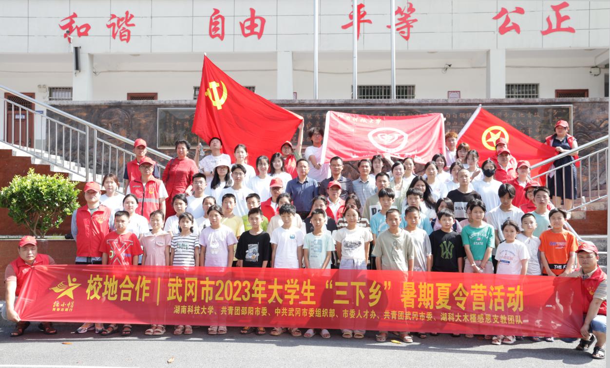 7月12日,湖南科技大学木槿感恩支教团奔赴湖南省邵阳武冈市。根据当地情况和需求,本次武冈市支教团划分成三个小分队前往司马冲镇九年制学校、邓元泰镇中心小学和正冲村,进行以“提灯引路育梦成光 初心不移送教下乡”为主题的校地合作的武冈市2023年大学生“三下乡”暑期夏令营活动。