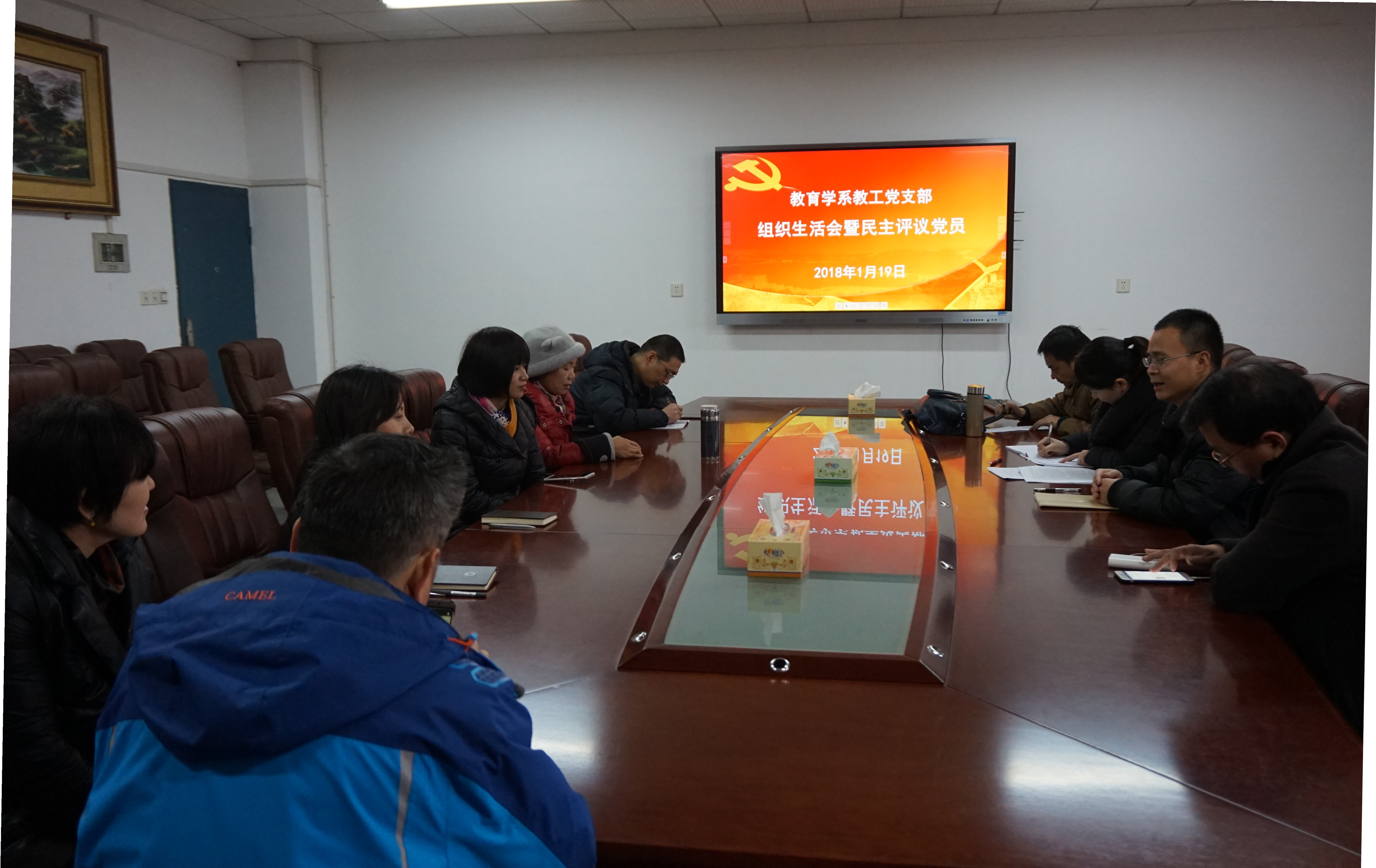 您所在的位置: 首页» 学院新闻 教育学院教工党支部召开专题组织生活会 时间:2018-01-21 00:00:00 2018年1月,根据学校安排,教育学院各教工党支部相继召开专题组织生活会,并开展了党员民主评议。