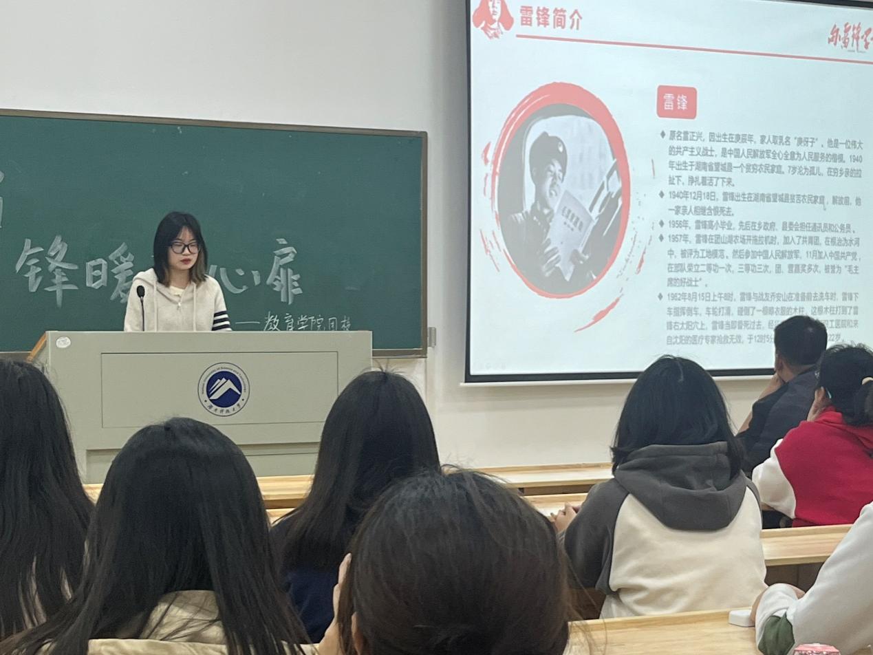 主持人李剑翔介绍活动流程与意义。各组学生代表结合自身的志愿经历,依次上台分享自己对雷锋精神的理解。
