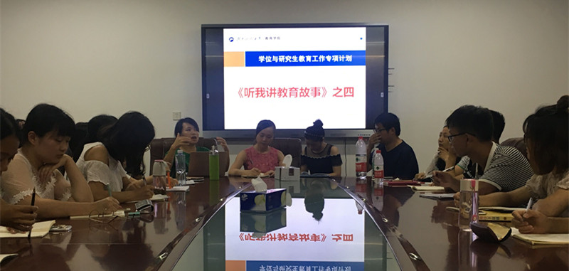 2017年暑假,我校迎来了全日制和在职并轨招生后的首批教育硕士研究生正式开学,本届研究生中,既有教学经验丰富的资深教师,也有即将走上教师工作岗位的应届本科毕业生,为加强资深教师与新教师之间的交流,7月26日晚,一场“听我讲教育故事”主旨交流会在教育学院八教203会议室举行。交流会上,四名经验丰富的一线教师结合自身的教学经历,从“学生管理”、“教学工作”、“科研提升”、“人际关系”四个角度分享了教学经验。交流会由教育学院副院长谭千保主持,全体2017级学科教学(英语)领域研究生参加活动。