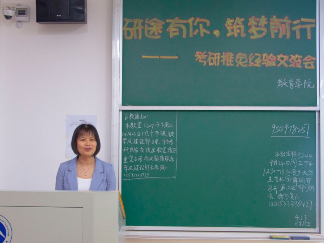 2024年4月23日,教育学院在敏行楼C309开展“研途有你,筑梦前行—考研推免经验交流会”。练素华老师主持,21、22、23级学生参加。