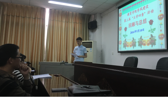 之后,王方老师对新的学士学位授予制度进行的讲解,指出以后只有平均学分绩点超过1.5分才可以拿到学位证书。习永远都是亘古的基调。子曰:“德之不修,学之不讲,闻义不能从,不善不能,是吾忧也。”但愿教育学院的每一位学子都可以在“五学四查”活动中取得长足的进步!