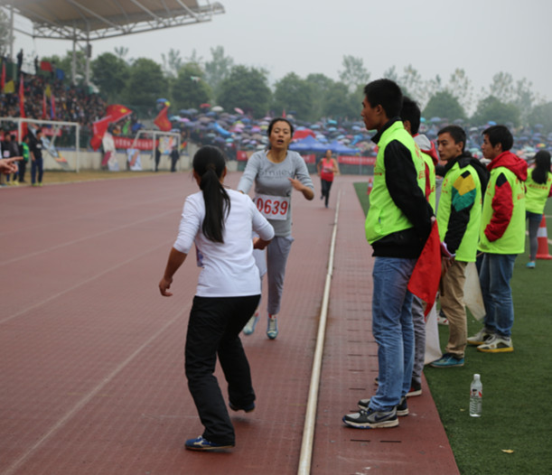今天,对学校学院的志愿者都加强了管理,教育学院应心二班的易煌辉说:“今天我们管的会严一些,那些没有工作证和志愿者服装的人都要被赶出内场外,所以工作可能会辛苦些。”站在操场上,我们可以看到教育学院的“教育不红,天理难容”的牌子始终高高举着;啦啦队的队员们也没有闲着,她们在场内进行表演,给广大同学们带来精彩的表演;同学们卖力的为运动员欢呼喝彩,体育部部长吴厚涛的嗓子都要已经快喊哑了,跑到服务台要金嗓子吃呢!