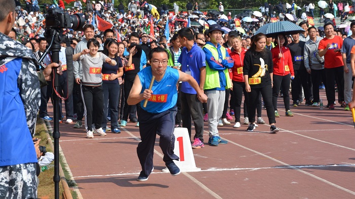 紧接着就是教师的团结杯接力大赛,各学院的教师运动员们进行200米接力的激烈追逐。我院党委副书记刘辉亚更是动力十足,亲自担任第一棒。比赛中同学们的欢呼声不断。 教师们在比赛中团结协作,奋勇拼搏,完成比赛,在比赛中体验运动的激情与魅力。赛前赛后,老师们的笑声不断。
