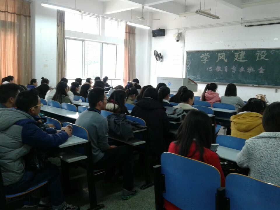 在这温暖的冬日里,科大教育之花正在盛情开放。 12月3日14:00在第八教学楼104,教育学院15级教育学专业开展了以“学风建设”为主题的班会。参加本次班会的成员有教育学院15级辅导员尹琼芳老师、教育学一班和二班的助班班刘敏和谷娟以及教育学专业全体同学。