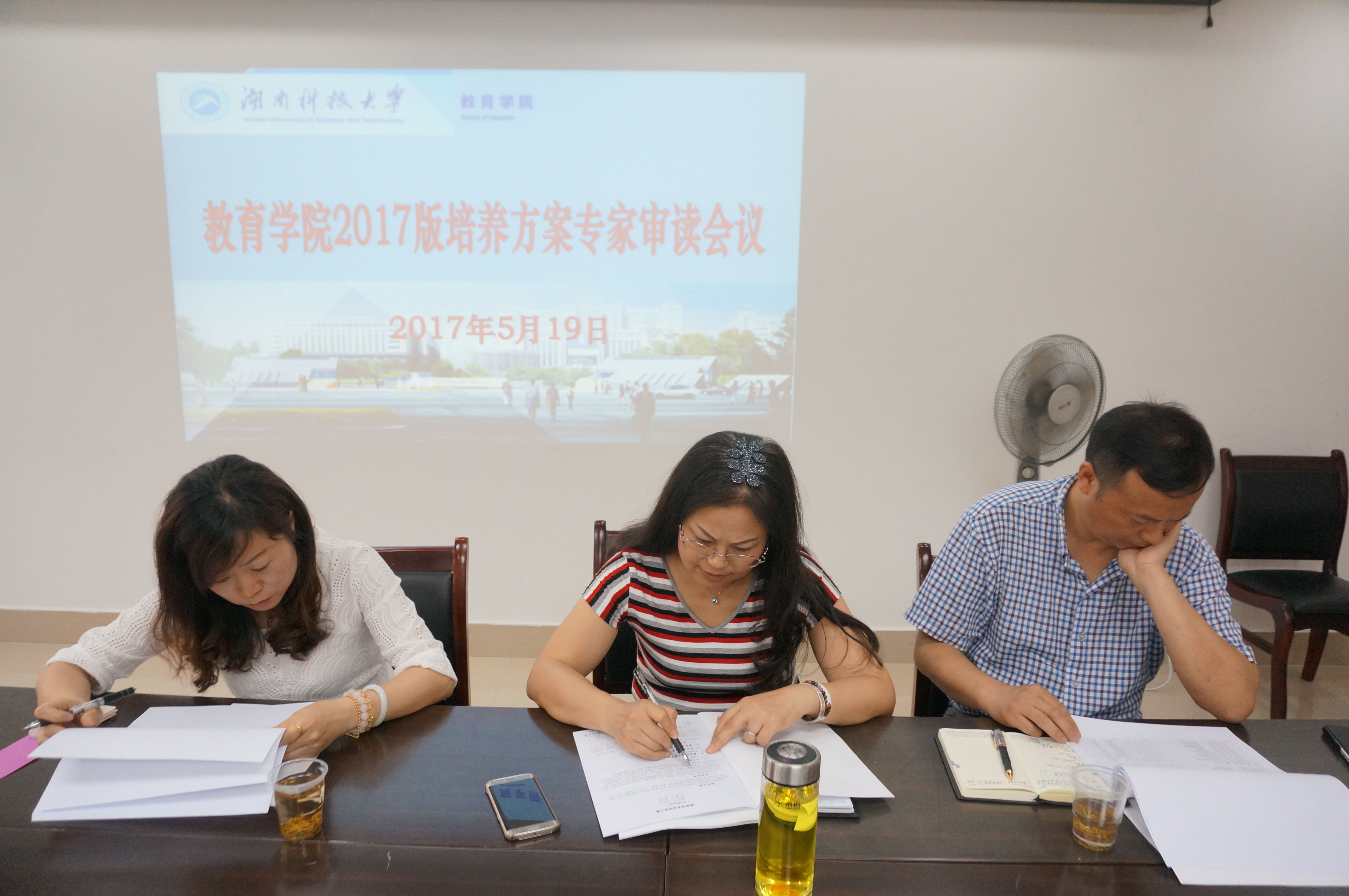 5月19日上午,教育学院组织教育学、小学教育和教育技术专业系主任赴湘潭市教育局,邀请校外专家对我院2017版本科人才培养方案进行审读,会议由教育学院教学副院长谭千保主持。湘潭市教育技术研究室副主任翁可立、湘潭市教育科学规划办副主任罗大红和湘潭市湘钢三校副校长罗光辉对我院本科人才培养方案提出了意见和建议。