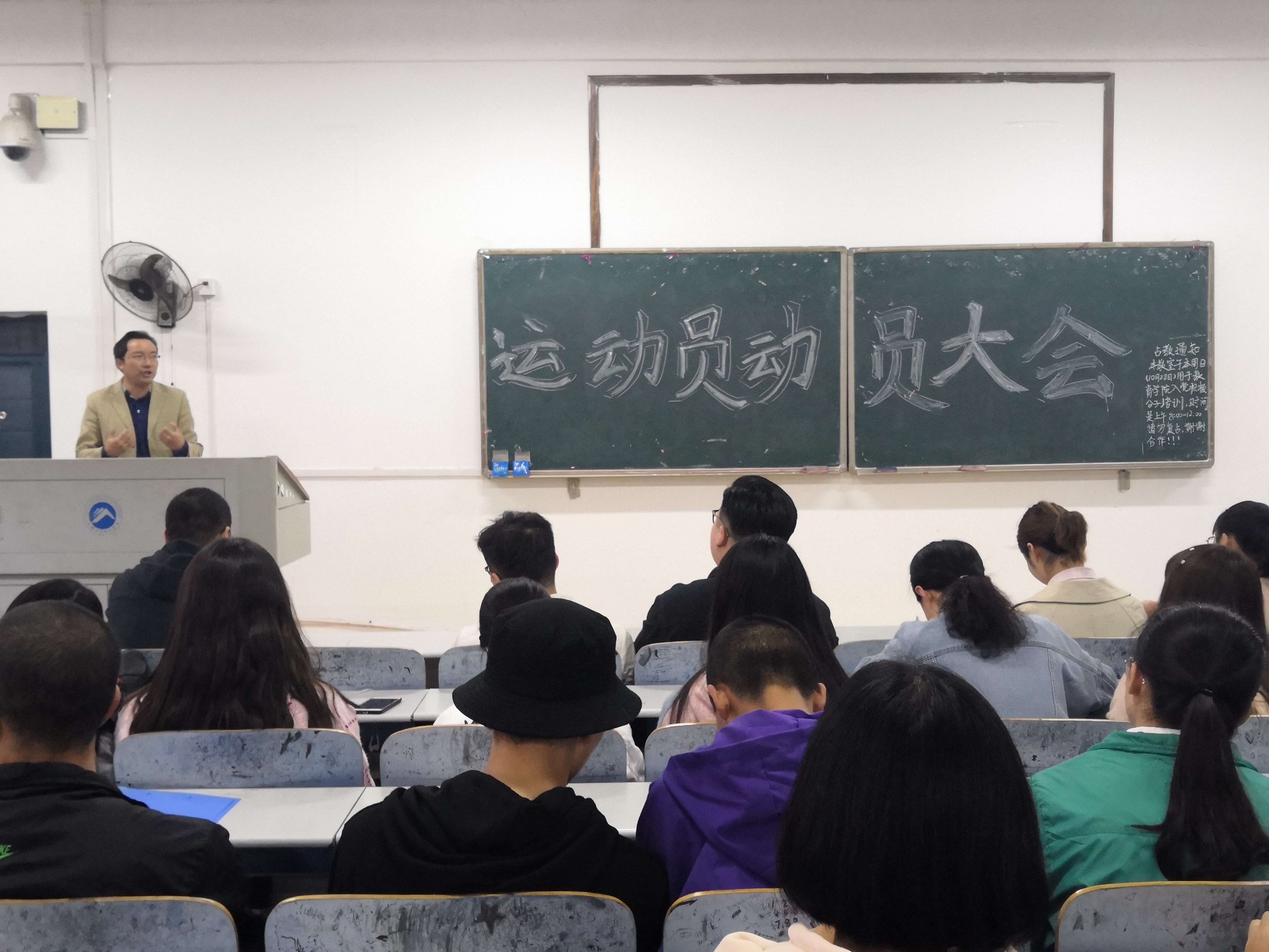 10月23日下午,教育学院体育部在第八教学楼3-3举办运动员动员大会,本次会议由体育部委员于红梅主持,学院党委副书记刘辉亚、学工办李涛老师、学生会主席团全体成员,学生会各部门代表和运动员们参加本次会议。
