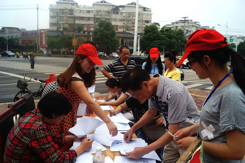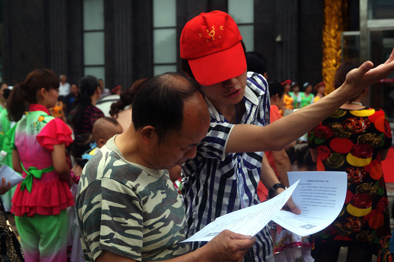 头戴小红帽、佩戴工作牌、手拿宣传单……,在现场准备工作过后,志愿们熟练的到达自己负责的区域开展活动究生和11级学长学姐的助阵让服务台前来咨询的居民络绎不绝。宣传现场随处可见跳跃在人群中的“红”和一张张工作证闪动的“白”。