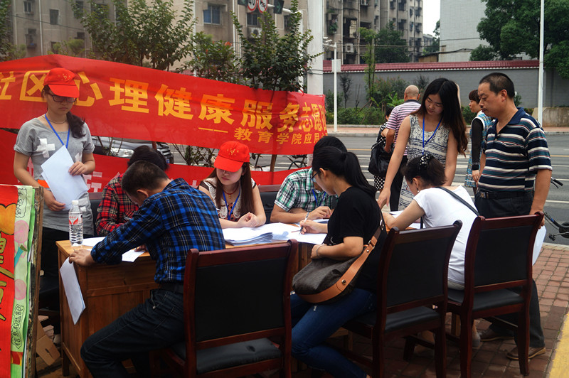 “我爱我心,幸福人生”。5月29,我院应用心理学系14名社区心理健康服务志愿者在湘潭市泗洲庵社区开展活动前期宣传工作。应用心理学系尹霞云老师带队并指导。