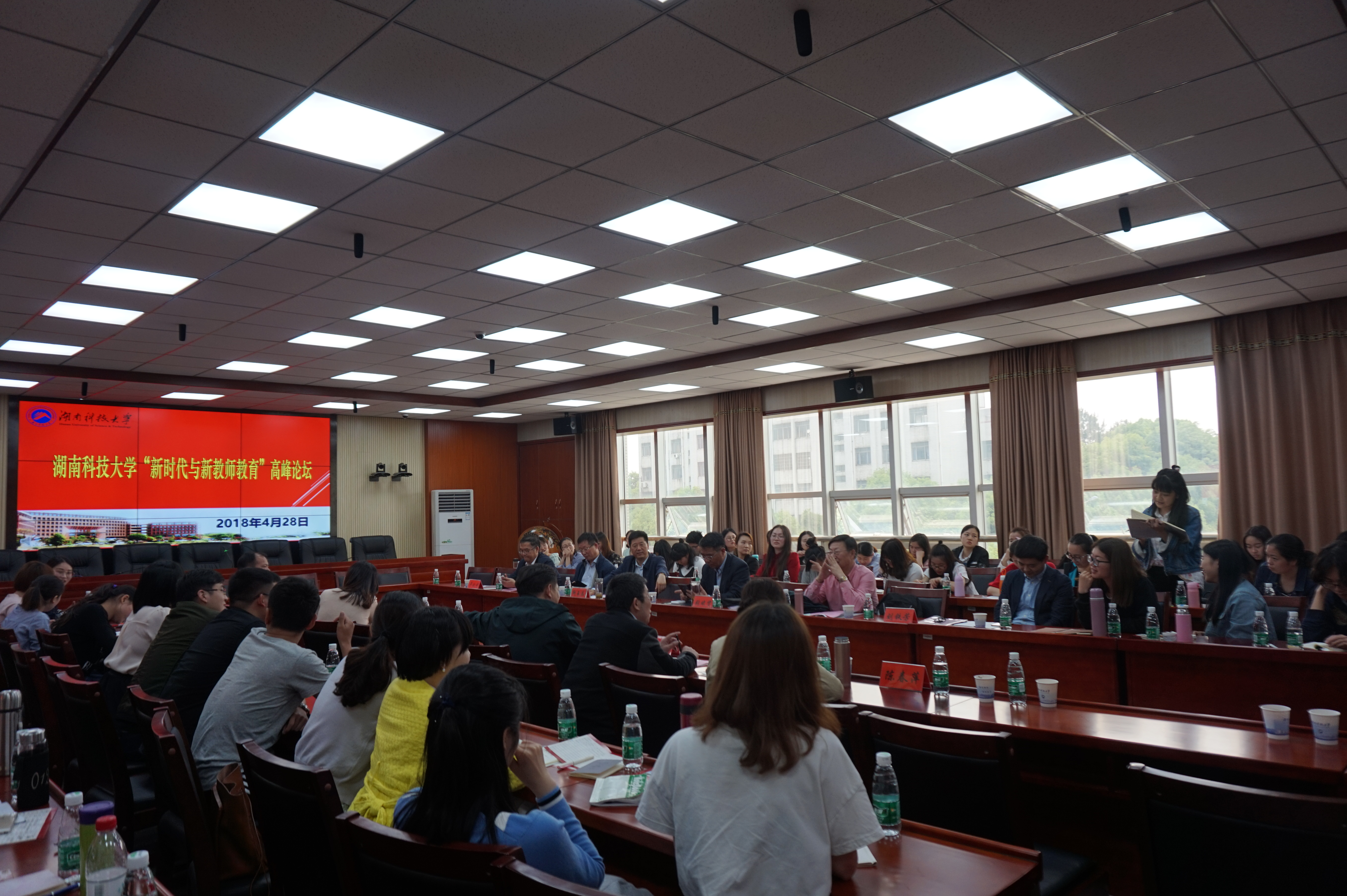 4月28日上午,为深入贯彻落实党的十九大精神,推动教师教育改革发展,造就高素质专业化创新型教师队伍,湖南科技大学“新时代与新教师教育”高峰论坛在教育学院308学术报告厅隆重举行。西南大学副校长、国务院学科评议组成员靳玉乐,全国教育专业学位教育指导委员会秘书长、“长江学者”特聘教授、北京师范大学教育学部张斌贤,全国教育学专业教育指导委员会委员、国家教学名师、首都师范大学特聘教授石鸥,全国教育专业学位教育指导委员会委员、“长江学者”特聘教授、华南师范大学教育科学学院院长卢晓中,全国教育专业学位教育指导委员会委员、华中师范大学教育学院涂艳国,全国教育专业学位教育指导委员会委员、湖南师范大学教育科学学院副院长刘铁芳及湖南科技大学副校长廖湘岳出席。