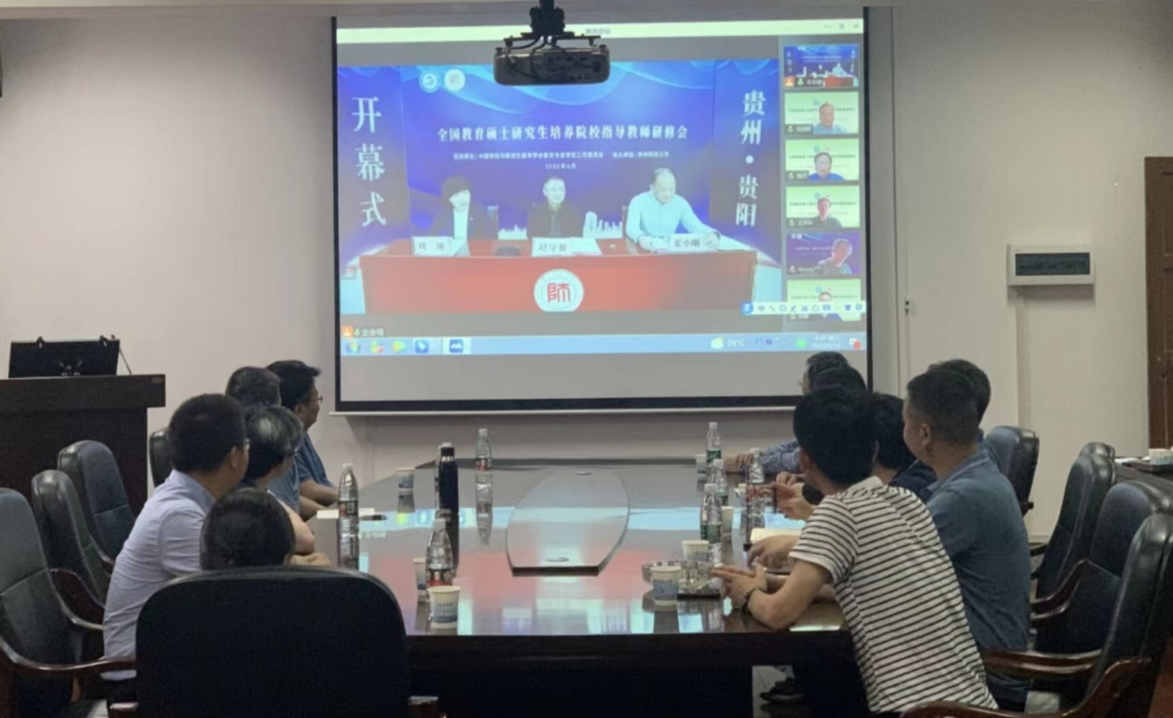 为进一步强化导师第一责任人切实履行立德树人职责,提高导师指导教育专业学位研究生学位论文的指导水平。6月11日,由中国学位与研究生教育学会教育专业学位工作委员会主办,贵州师范大学承办的全国教育硕士研究生培养院校指导教师研修会以线上线下相结合的方式开展,我校会议由教育硕士培养指导委员会组织,分会场设在化工楼310会议室,教育硕士专业学位(理科)硕士生导师参加了本次研修会。