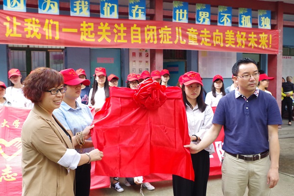 为创建一个长期有效的大学生志愿服务基地,更直接地给亲园培智学校的孩子营造一个良好的成长环境,辅助他们接受专业的教育,教育学院青年志愿团于2017年5月23日下午在亲园培智学校举行了“湖南太阳成集团tyc122cc入口青年志愿团服务基地”挂牌仪式。出席仪式的有教育学院党委副书记刘辉亚、教育学院团委书记练素华、教育学院青年志愿团以及亲园培智学校的老师、孩子和家长。挂牌仪式由亲园培智学校张老师主持。