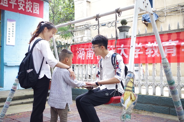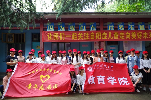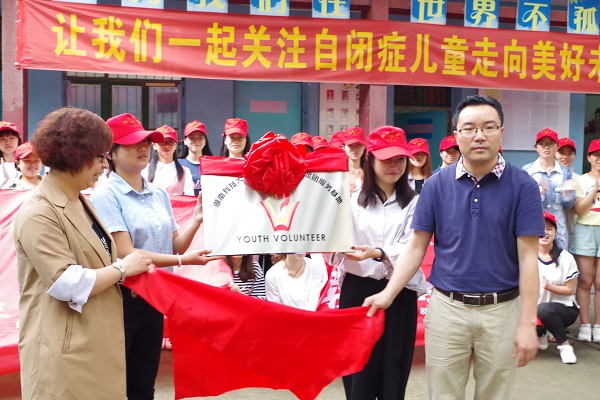 因为我们在,世界不孤独。教育学院青年志愿团将会一直陪伴着需要帮助的孩子们,用深情去守候着他们,这也是本次仪式所传递的意义所在。