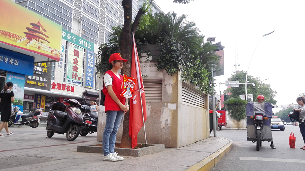 半天轮勤的志愿服务四小时中,教育学院团委学生会四名志愿者谨遵创文志愿服务条例,认真守岗、坚持志愿服务精神,通过对行人进行交通引导、行为纠正、宣传创文活动内容,现场秩序明显转好,这是中国梦的基本要求,也是为民为公的必要前提,于12时,志愿者整旗换衣,结束首日的上半轮志愿服务,为下半轮14时30分至18时志愿活动进行良好示范,红旗映衬志愿红马甲和志愿者赤子红心。