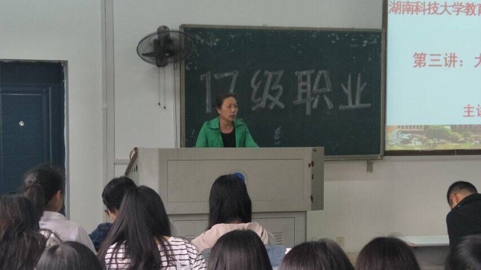 4月10日下午四点,湖南太阳成集团tyc122cc入口于第八教学楼2-3开展了"助我成长"系列讲座的第三次讲座:大学生职业生涯规划,其主讲人为尹琼芳老师,教育学院17级全体学生参加了该次讲座。