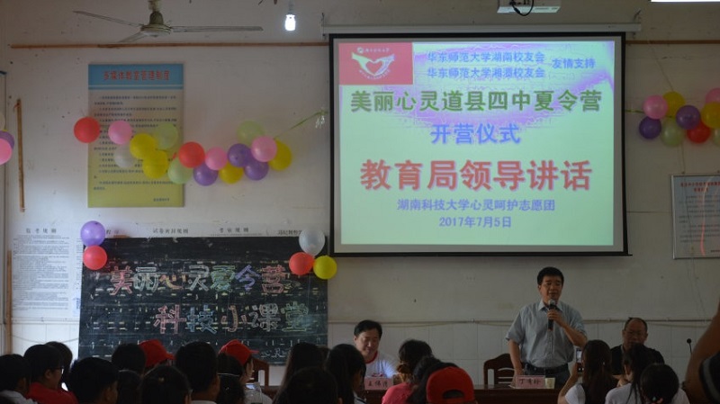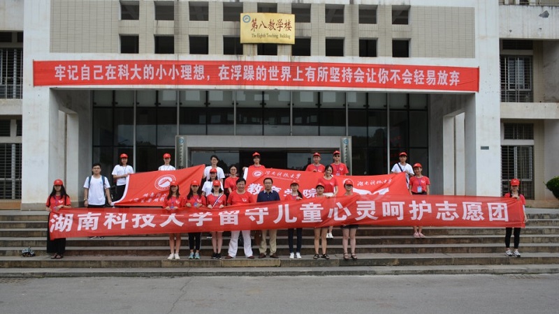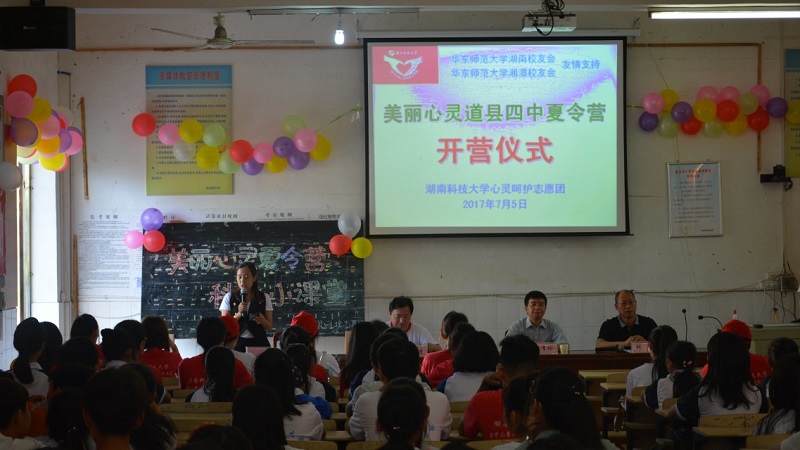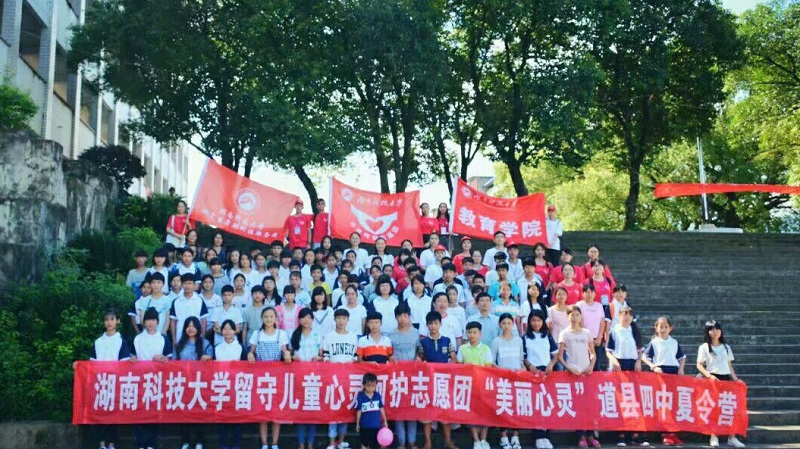 2017年7月4日,在湖南科技大学留守儿童心灵呵护志愿团创始人兼指导老师王伟清教授的带领下,由教育学院6名研究生和17名本科生组建的志愿服务队伍赴永州市道县四中开展暑期三下乡“美丽心灵”志愿活动,本次活动意图通过为近百名被试对象开展心灵呵护活动以促进学生的心灵健康和提高品性发展水平。
