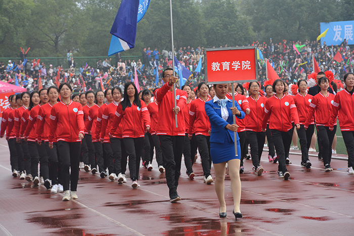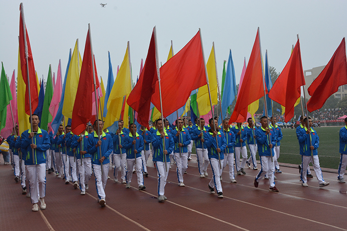 伴着激情昂扬的《运动员进行曲》,彩旗方阵和啦啦队方阵步入会场,各学院代表迈着整齐的步伐依次走过主席台,运动员代表们身着统一服装,精神饱满,斗志昂扬,脸上写满对比赛的热情与自信。随后,身姿矫健挺拔的护旗方阵,在大家的注目下将国旗迎至国旗台并冉冉升起。